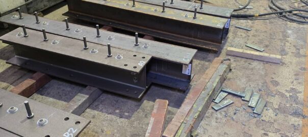 柱の大組、ロボットを使った溶接。 塗装を待つ梁の製品達。 同じ物件の製品。 千葉県へお嫁に参ります。 これらは7/1出荷予定の製品です。